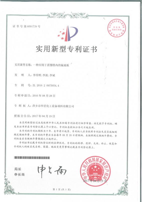 - 一種應用于蒸餾塔內(nèi)的旋流板-實用